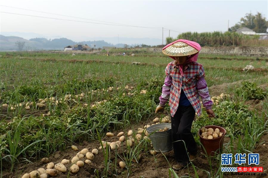 云南省德宏傣族景頗族自治州芒市軒崗鄉(xiāng)農(nóng)民提著采挖好的馬鈴薯準(zhǔn)備前去裝箱。當(dāng)?shù)伛R鈴薯每畝產(chǎn)值近6000元,是村民增收的主要途徑之一(2014年3月21日攝)。近年來,云南省大力推進扶貧攻堅,走出了一條整村、整鄉(xiāng)、整縣、整州推進的扶貧開發(fā)新路子。黨的十八大以來,以習(xí)近平同志為總書記的黨中央高瞻遠矚、深謀遠慮,以高度的政治感、使命感和責(zé)任感,把扶貧開發(fā)工作提升至治國理政新高度,廣泛凝聚社會各界力量,推進實施精準(zhǔn)扶貧方略,為到2020年全面建成小康社會奠定堅實基礎(chǔ)。按照中央部署,通過產(chǎn)業(yè)扶持、轉(zhuǎn)移就業(yè)、易地搬遷、政策兜底等方式,到2020年將實現(xiàn)7017萬農(nóng)村貧困人口脫貧目標(biāo)。新華社記者 胡超 攝