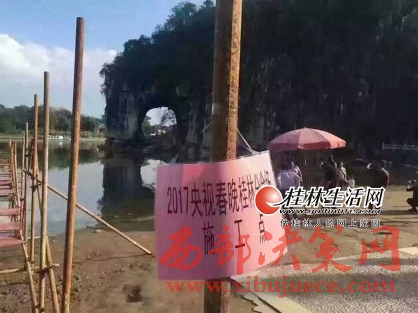 為了真正體現(xiàn)東西南北中,全民大聯(lián)歡,2017年央視春晚延續(xù)2016年春晚特色,特別設置了東西南北四大分會場,桂林憑借秀美的山水風光和厚重的歷史文化底蘊,被確定為2017年央視春晚南方分會場。17日上午,景俊海一行來到2017年央視春晚桂林分會場外景地象山景區(qū)。象鼻山被薄霧籠罩,如夢似幻,漓江煙波渺渺,美不勝收,山水和諧相融構(gòu)成了中國南方最具代表性的自然美景。從11月12日起,春晚桂林分會場舞臺搭建工作已經(jīng)進場,工人正在用一根根鋼管搭建水上舞臺。