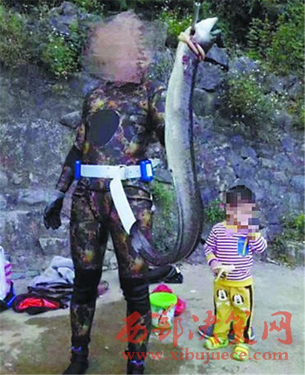 與此同時,網(wǎng)友又傳出了另一段視頻:一名身穿黑色潛水服的男子在洞中捕捉到鰻鱺并將其制服。而視頻中的鰻鱺與楊先生手持擺拍的魚長度特征相仿。網(wǎng)友猜測,黑色潛水服男子可能才是獵殺“魚王”的真兇。
