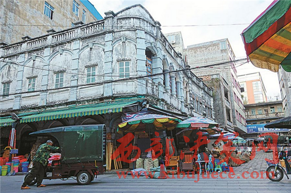 談起防城港市,人們最深的印象是海岸邊氣派的港口,海灣間林立的高樓。然而,當(dāng)你不經(jīng)意間步入防城老城區(qū),便會驚訝地發(fā)現(xiàn)——一條條幽深的老街,一座座陳舊的騎樓,一棟棟頹廢的公館,在這里與靜靜流淌的江水相伴,將來訪者拉回到早已消逝的歲月……