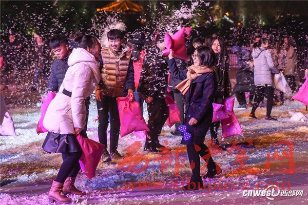 12月24日是西方傳統(tǒng)節(jié)日平安夜,風靡全球的“枕頭大戰(zhàn)”在西安大唐芙蓉園舉行,眾多青年男女相聚于此,拋卻煩惱與壓力,火熱“開戰(zhàn)”,歡樂與羽毛齊飛。