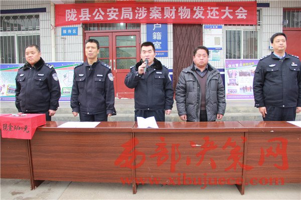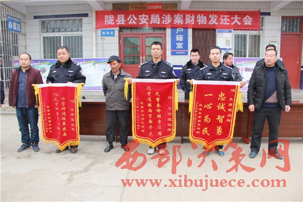 西部決策網訊(帥華鋒 杜杰 通訊員 邢亞洲)12月29日中午,隴縣公安局東南派出所召開贓物發(fā)還大會,為群眾發(fā)還現(xiàn)金44620元,群眾放起了鞭炮送來感謝信和錦旗表示感謝。。