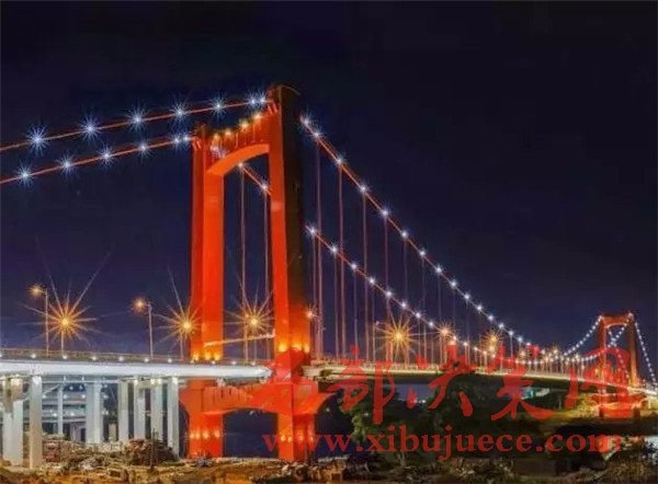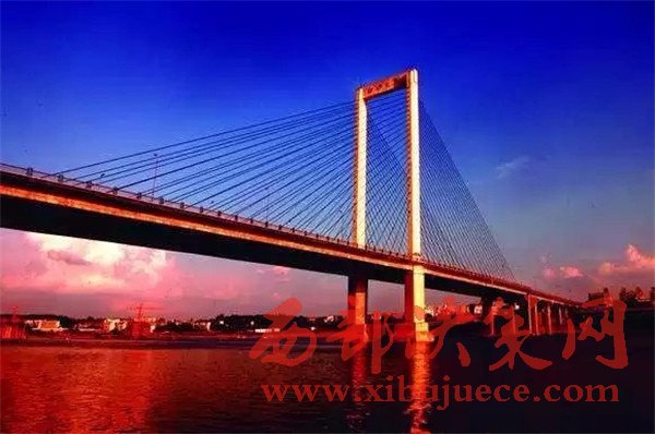 白沙大橋采用獨(dú)塔雙孔120米斜拉橋橋型,橋長(zhǎng)2604米,猶如一條巨龍臥在邕江之上橋身安裝的1000多套各種景觀燈將光線直射邕江水面,營(yíng)造出“橋水合一”如同仙境般的美景。