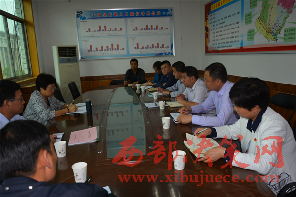 縣長張新科向省市領導匯報產(chǎn)業(yè)扶貧項目建設情況.