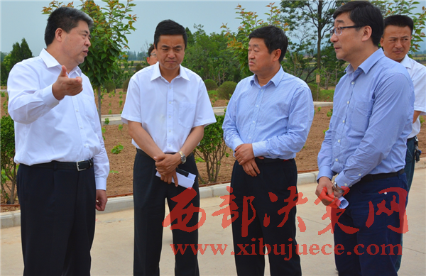 縣委書記何玲縣長張新科在搭載式扶貧試點企業(yè)千陽縣海升蘋果給檢查的上級領導匯報工作.