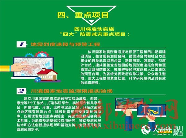 其中,已啟動(dòng)實(shí)施的“地震烈度速報(bào)與預(yù)警工程”,由國家項(xiàng)目和地方項(xiàng)目構(gòu)成,國家項(xiàng)目在川投資1.5億元左右。該項(xiàng)目將完善全省地震監(jiān)測(cè)臺(tái)網(wǎng),建成覆蓋全省的地震烈度速報(bào)臺(tái)網(wǎng)和覆蓋重點(diǎn)監(jiān)視防御區(qū)、城市群等經(jīng)濟(jì)發(fā)達(dá)和人口密集區(qū)的預(yù)警臺(tái)網(wǎng),提供分鐘級(jí)的地震烈度、地震速報(bào)和秒級(jí)地震預(yù)警信息服務(wù),為地震科學(xué)和預(yù)測(cè)預(yù)報(bào)研究提供豐富的基礎(chǔ)觀測(cè)數(shù)據(jù)。