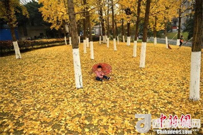 重慶街邊銀杏冬日展秋色