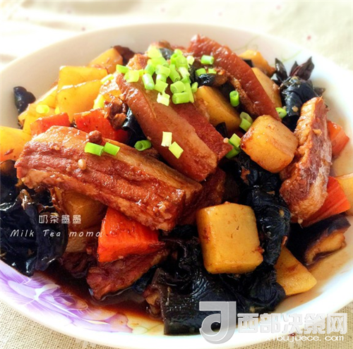 五花肉300克、土豆1個、胡蘿卜1個、黑木耳10克、香菇2朵。