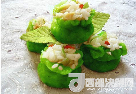 4、拌好的糯米包入面皮;收口,做成花瓶的形狀;做好了上鍋蒸十五分鐘就可以了。