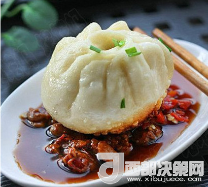 5、點綴上蟹膏,做若干包子生坯;生坯擺放小籠內(nèi)冷水上籠;大火蒸10分鐘即可。