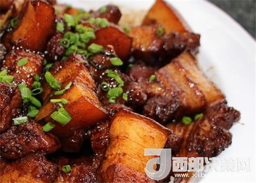 3、轉小火,肉下鍋,煸至兩面金黃即可。