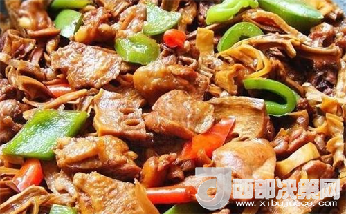 8、等筍干軟爛時,大火收汁,加青紅椒塊,最后加鹽調味。