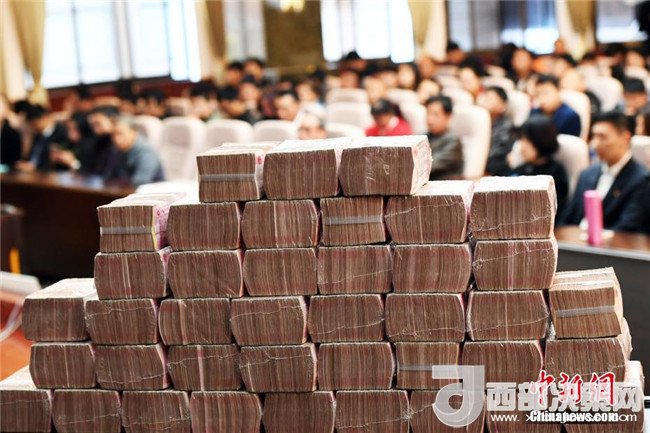 1月23日,發(fā)放現(xiàn)場(chǎng)準(zhǔn)備發(fā)放堆放在桌子上的現(xiàn)金。當(dāng)日,在2018年春節(jié)臨近之際,昆明市五華法院“法威行動(dòng)”執(zhí)行案款暨司法救助金集中發(fā)放在五華法院進(jìn)行。共對(duì)107件涉民生、涉金融案件發(fā)放執(zhí)行案款約5000萬(wàn)元,同時(shí)對(duì)13起執(zhí)行案件中的14名特困人員發(fā)放司法救助金346000元。此次集中發(fā)放案款暨司法救助金大會(huì),旨在彰顯司法的權(quán)威和司法的人文關(guān)懷,確保申請(qǐng)執(zhí)行人和特困人員的合法權(quán)益得到及時(shí)兌現(xiàn),讓民眾過(guò)上一個(gè)歡樂(lè)祥和的新春佳節(jié)。記者李進(jìn)紅攝
