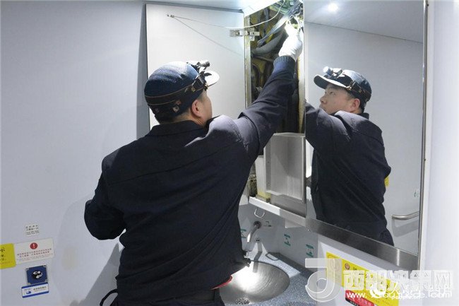 圖地勤機(jī)械師正在檢查給排水及衛(wèi)生系統(tǒng)。