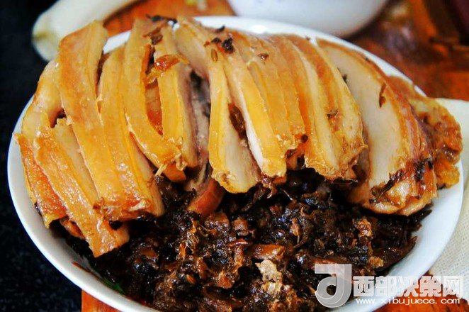 15.出鍋倒出盆內(nèi)的湯汁,將五花肉和梅干菜倒扣在碗內(nèi)