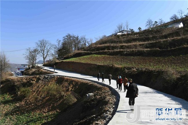 尋甸回族彝族自治縣河口鎮(zhèn)窯灣子村村民行走在通向村外的混凝土硬化路上(2月20日攝)。
