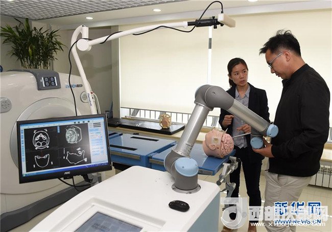 北京柏惠維康公司的工作人員在調(diào)試神經(jīng)外科手術(shù)機(jī)器人(2018年5月10日攝)。北京柏惠維康公司研制的神經(jīng)外科手術(shù)機(jī)器人在行業(yè)內(nèi)占據(jù)領(lǐng)先地位。 新華社記者羅曉光攝