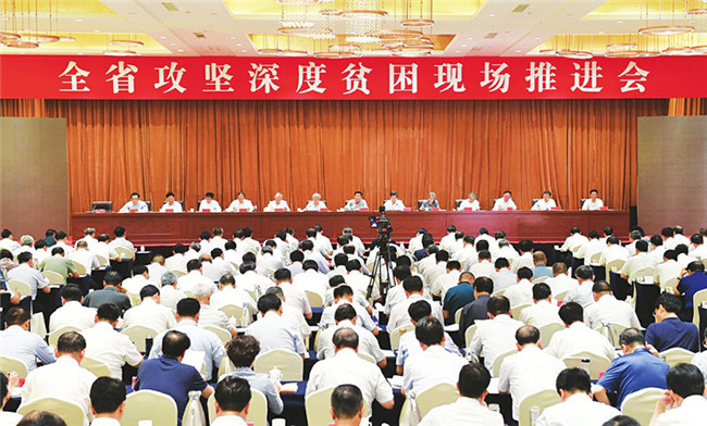 圖為全省攻堅深度貧困現場推進會會場。記者李聯軍攝