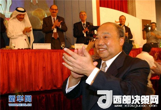2001年11月10日,世界貿(mào)易組織第四屆部長級會議在卡塔爾首都多哈以全體協(xié)商一致的方式,審議并通過了中國加入世貿(mào)組織的決定。這是決定通過后,時任中國政府代表團團長、外經(jīng)貿(mào)部部長石廣生與其他與會者鼓掌慶賀。新華社記者 王建華 攝