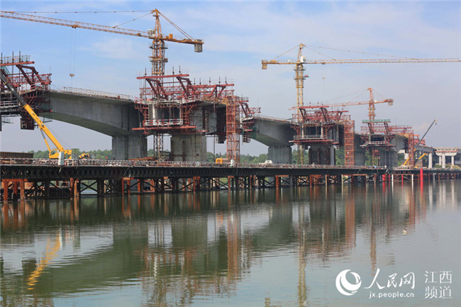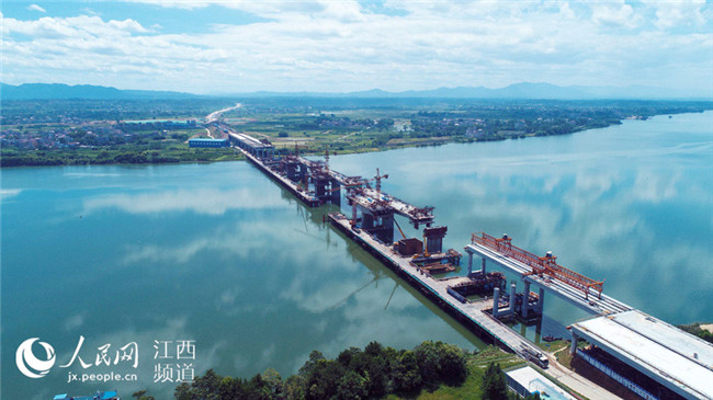 7月17日電17日上午,廣吉高速公路江西泰和北贛江特大橋正在進(jìn)行掛籃施工作業(yè),在藍(lán)天白云、綠水青山襯托下,顯得格外美麗壯觀。泰和北贛江特大橋位于江西省泰和縣萬合鎮(zhèn),是廣吉高速公路唯一一座特大橋,是全線控制性工程,大橋總長(zhǎng)1075米,總投資近1.5億元。大橋自2016年11月開工建設(shè)以來,工程進(jìn)展順利,預(yù)計(jì)于今年底前建成合龍,為廣吉高速2019年1月如期建成通車奠定基礎(chǔ)。