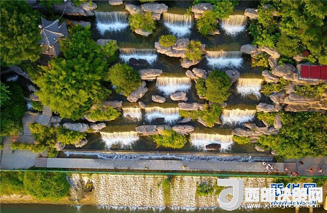 炎炎夏日,柳州市區(qū)柳江沿岸的人工瀑布群每天定時開放,為市民送去清涼。新華社發(fā)(黎寒池 攝)