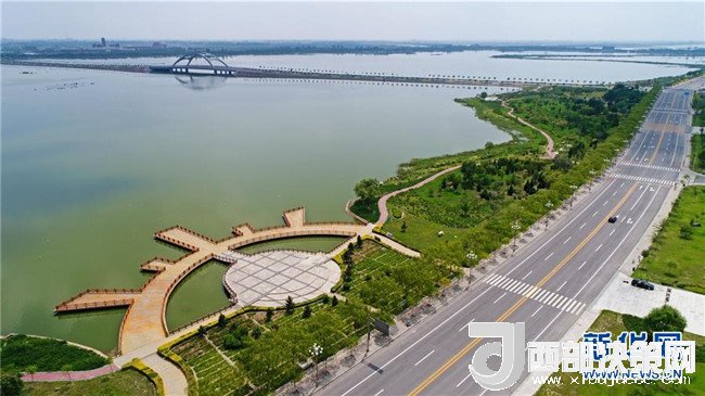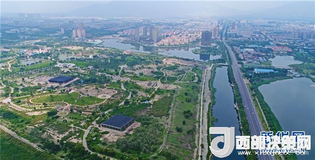 寧夏石嘴山市星海湖及周邊水系貫穿城市(7月31日無人機(jī)拍攝)。 新華社記者 王鵬 攝