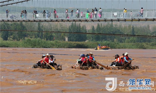 8月22日,游客在中衛(wèi)市沙坡頭旅游景區(qū)乘坐羊皮筏子游覽。沙坡頭旅游景區(qū)因地制宜發(fā)展沙漠旅游,旺季日接待游客量達(dá)兩萬人次。新華社記者任鵬飛攝