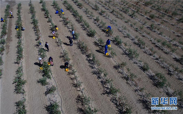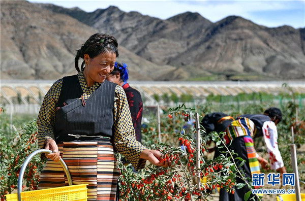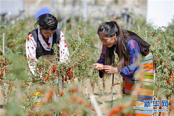 近日,西藏白朗縣萬畝枸杞生態(tài)觀光產業(yè)園進入采摘期。兩年多來,經過當地政府和企業(yè)的共同努力,將原有的沙荒地進行改造,成功栽培7000余畝枸杞目前已果實累累。 新華社記者 張汝鋒 攝