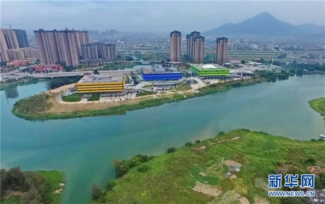 這是利用木蘭溪流域舊河道開挖成的人工湖——玉湖。當地在此結合周邊公共綠地,建設公共建筑,實現了現代建筑與自然景觀渾然一體(8月6日無人機拍攝)。新華社記者 林善傳 攝