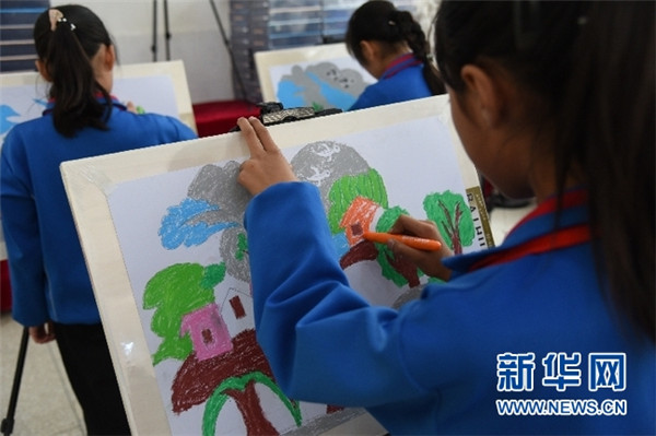 蘭渭希望小學(xué)的孩子們正在用海歸捐贈(zèng)的畫(huà)具繪畫(huà)。新華社記者王朋 攝