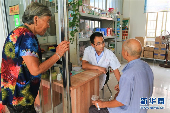 在山東費縣朱田鎮(zhèn)崔家溝社區(qū),當(dāng)?shù)卮迕裨谛l(wèi)生室就診(8月22日攝)。崔家溝村是遠近聞名的“光棍村”“貧困村中的貧困村”。2016年3月,崔家溝村在中央異地搬遷政策的扶持下,實現(xiàn)了整體搬遷,1600多口人搬到了鎮(zhèn)駐地。從此,昔日的“光棍村”,一躍進入朱田鎮(zhèn)富裕村行列。新華社記者 王南 攝