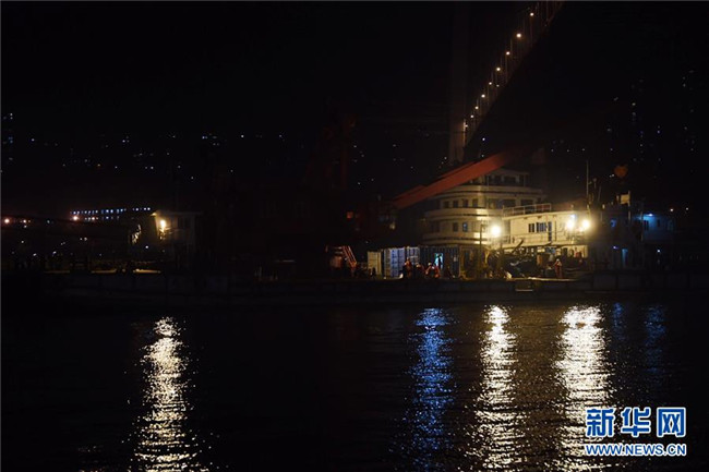 這是10月30日晚間拍攝的重慶萬州公交車墜江事故救援現(xiàn)場。新華社記者王全超攝