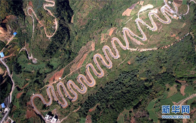 云南宜良“68道拐”位于云南省昆明市宜良縣,是宜良縣城通往靖安哨村的盤山公路。公路依山梁而修建,蜿蜒曲折,6.3公里的路程共有68道彎?!⌒氯A社記者 藺以光 攝