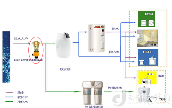 通常安裝在進(jìn)水管道水表后,是對(duì)全屋用水的第一道過(guò)濾、防垢設(shè)備。可以阻止水體中成垢離子的結(jié)合,并且過(guò)濾自來(lái)水中的泥沙、鐵銹、大顆粒物質(zhì)。