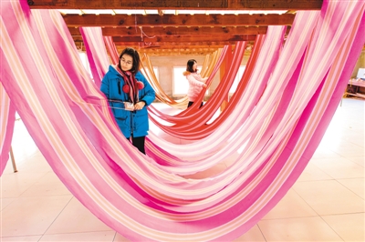 2018年以來,河北省衡水市冀州區(qū)依托當?shù)氐氖〖壏沁z田園棉手織粗布技藝資源,采取“非遺+扶貧”的模式,通過非遺傳承人開展技能培訓(xùn)、老師傅傳幫帶等,讓村民在傳承非遺文化的同時學習傳統(tǒng)技藝,助力脫貧致富。圖為12月25日,衡水市冀州區(qū)一家老粗布生產(chǎn)企業(yè)的工人在檢測布料干濕度。
