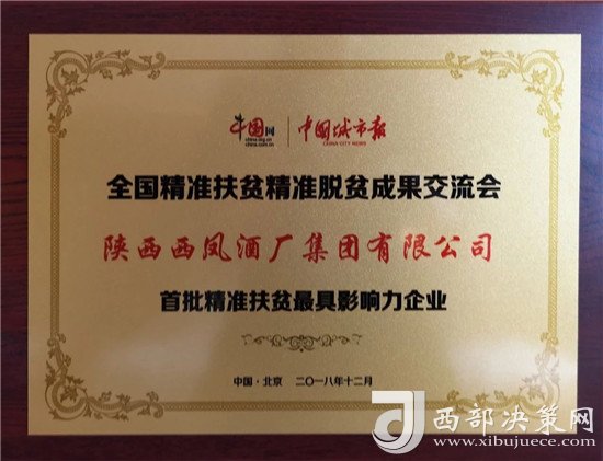 西鳳集團公司榮獲全國“首批精準(zhǔn)扶貧最具影響力企業(yè)”榮譽稱號