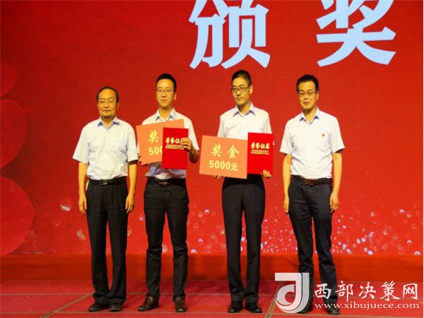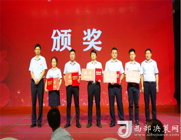西鳳集團公司黨委書記、董事長、西鳳股份公司董事長張正,西鳳股份公司副總經(jīng)理、西鳳營銷管理公司總經(jīng)理周艷花為受表彰的先進個人頒獎