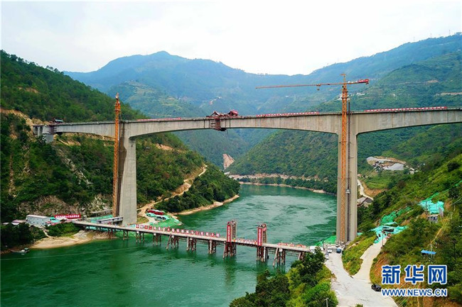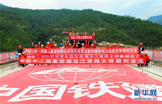 當(dāng)日,由中鐵十二局集團公司承建的中緬國際通道大(理)臨(滄)鐵路瀾滄江雙線大橋順利合龍。該橋位于云南省大理州南澗縣,是目前世界上在建的高地震烈度區(qū)最大跨度鐵路雙線連續(xù)剛構(gòu)橋,全長431.6米。