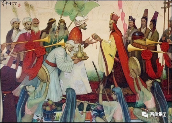 酒除了是國家祭祀必不可少的重要部分外,也在商業(yè)賦稅和人們情感交流中承擔著重要地位。陜西西安(古長安)是古絲綢之路的起點,鳳翔是古絲綢之路的重要驛站,西鳳酒自漢代以來就作為饋贈友邦、域外交流的國禮。史書記載,唐儀鳳(公元676年)年間的一個陽春三月,吏部侍郎裴行儉護送波斯王子泥涅師回國途中,行至鳳翔縣城以西的亭子頭村附近,發(fā)現(xiàn)柳林鎮(zhèn)窖藏陳酒香氣將五里地外亭子頭的蜜蜂蝴蝶醉倒的奇景,即興吟詩贊嘆曰:“送客亭子頭,蜂醉蝶不舞;三陽開國泰,美哉柳林酒”,并以此詩贈送王子。