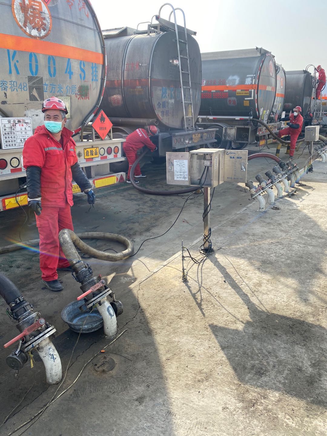 已近零時,空曠的付油區(qū)氣溫早已降至零攝氏度以下。此時,油庫的發(fā)油作業(yè)依然沒有停止……油庫的幾名工友,頭戴紅色安全帽、身著藍(lán)色工裝,對入庫油庫油車進(jìn)行安全檢查,驗票員仔細(xì)核對著票據(jù)信息,引導(dǎo)車輛正確???,不斷提示駕駛員注意操作安全。