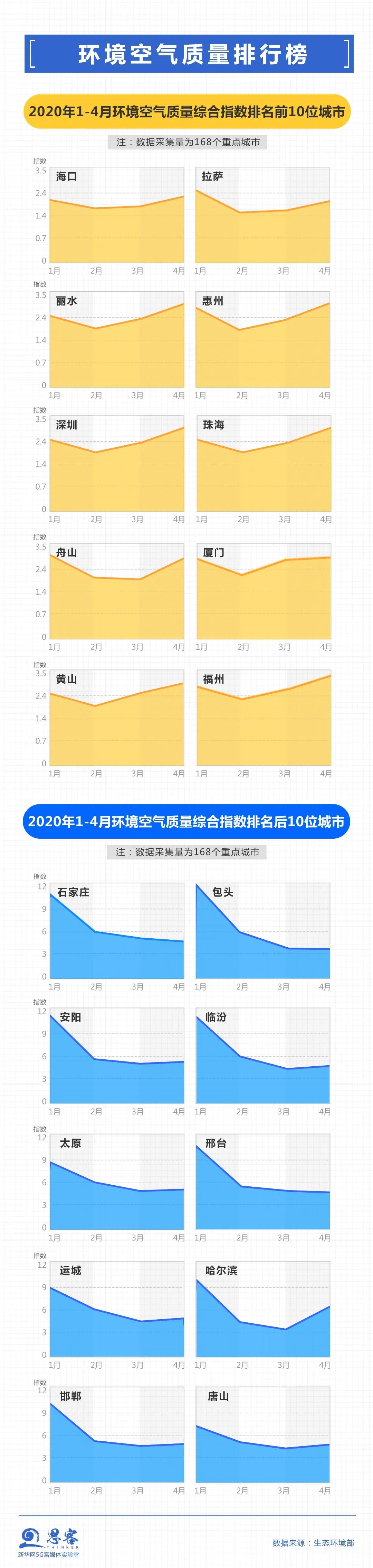 從2020年1-4月數(shù)據(jù)看,全國(guó)337個(gè)地級(jí)及以上城市在平均優(yōu)良天數(shù)、達(dá)標(biāo)率以及PM2.5 年均濃度三大指標(biāo)上均比上年同期有所改善。