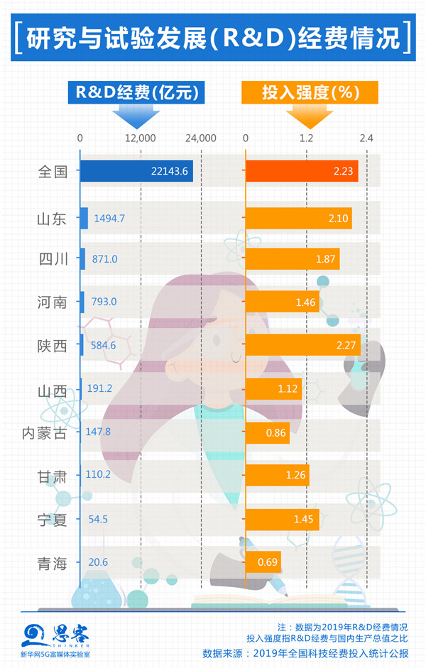同東部沿海地區(qū)、南方省份相比,黃河流域創(chuàng)新競爭壓力巨大,創(chuàng)新要素“孔雀東南飛”的趨勢嚴峻。2019年,九省區(qū)內只有陜西的R&D經費投入強度高于全國平均水平。高端人才、技術勞動力、產業(yè)資本等關鍵要素外流態(tài)勢仍在持續(xù),因此黃河流域在新舊動能轉換上面臨困境。