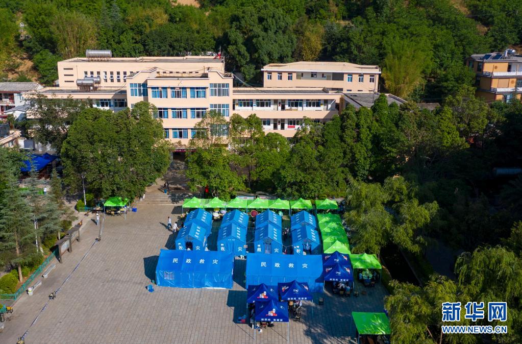 5月24日拍攝的漾濞一中操場上搭建起的帳篷(無人機照片)。新華社記者胡超攝