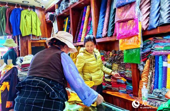 進(jìn)入旅游旺季后,來自天南地北的游客到拉薩八廓古城賞民俗品文化,位于八廓街上的朵究倉(cāng)藏裝店也因此成了必備網(wǎng)紅打卡店。“我在新聞里看到總書記來過你們店,所以專門過來的,想買一身藏裝作紀(jì)念,老板你幫我看看哪件合適?”來自東北的吳女士邊挑選衣服邊說。
