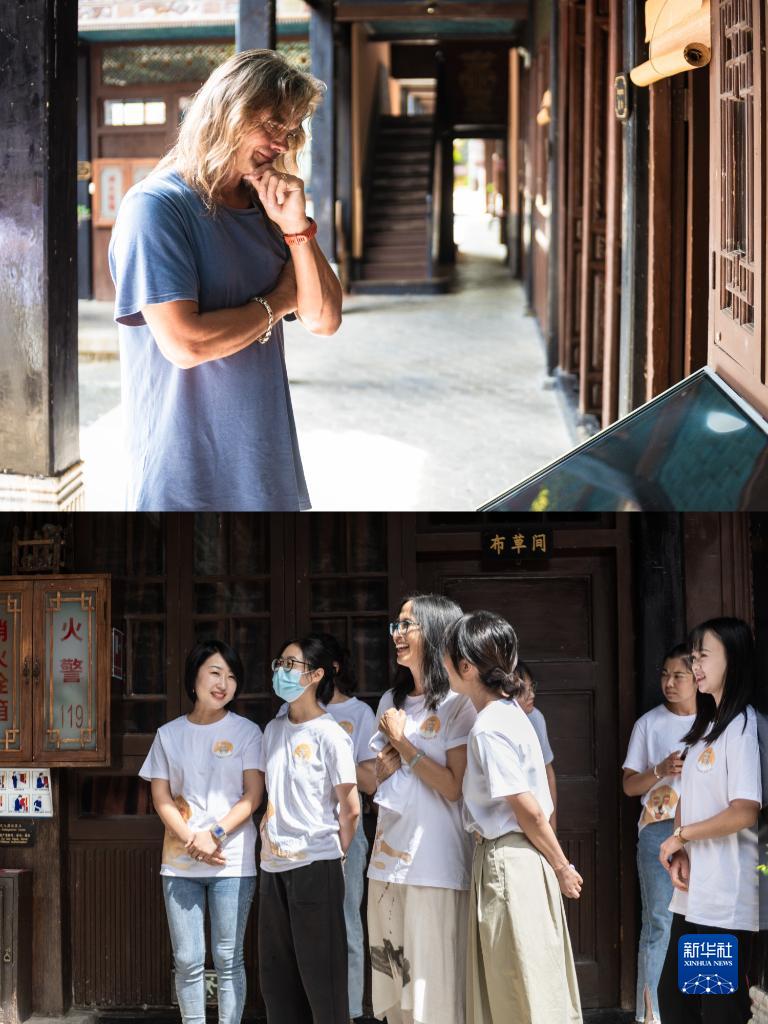 8月27日,林登在喜洲古鎮(zhèn)喜林苑向外國訪客介紹當(dāng)?shù)匚幕?。新華社記者 曹夢(mèng)瑤 攝