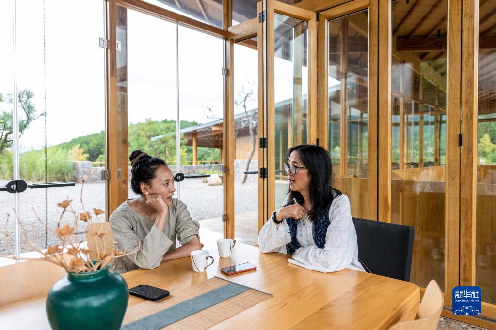 8月31日,林登和妻子瑾妮在沙溪鎮(zhèn)石龍村討論鄉(xiāng)村圖書館的設(shè)計(jì)。新華社記者 曹夢(mèng)瑤 攝