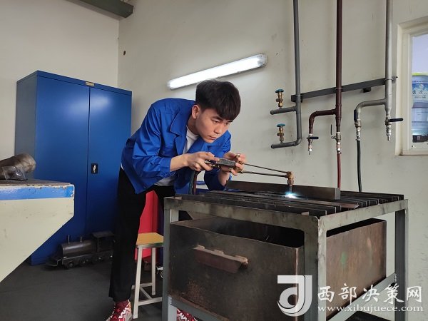 見到黨金鑫時(shí),他正在實(shí)訓(xùn)車間緊張忙碌地備戰(zhàn)著第二屆全國職業(yè)技能大賽(世賽選拔賽),作為助教,他還同時(shí)肩負(fù)著帶領(lǐng)學(xué)生、傳授經(jīng)驗(yàn)的任務(wù)??赡苓B他自己都沒想到,在這所實(shí)訓(xùn)車間內(nèi),他能將自己的才華施展得淋漓盡致,靠著一門技術(shù)實(shí)現(xiàn)了“一飛沖天”。
